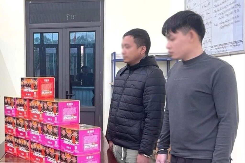 Qua kiểm tra, tổ công tác phát hiện trên cabin xe có Lê Thanh Cao (SN 1992, trú tại phường Tây Hoa Lư, tỉnh Ninh Bình) là lái xe và Bùi Văn Lương (SN 2002, trú tại phường Yên Sơn, tỉnh Ninh Bình) đang có hành vi mua bán trái phép pháo hoa nổ.