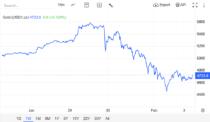 Giá vàng thế giới giao ngay trên thị trường châu Á lúc 6 giờ 15 sáng nay ngày 3/2 (giờ Việt Nam) giao dịch ở quanh ngưỡng 4.723 USD/ounce, giảm 2 USD/ounce so với cùng thời điểm ngày hôm qua.