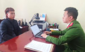 Cán bộ Công an phường Hà Nam làm việc với đối tượng Trần Đình Thắng. [...]