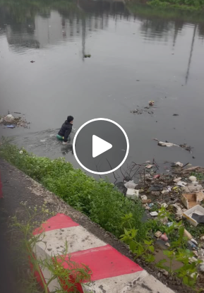 Mặt đường cách sông khoảng 3m, Trang đứng trên bờ quay lại khoảnh khắc chồng mình cùng người đàn ông kia cứu người từ dưới sông lên.