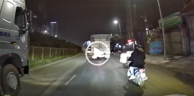 [VIDEO] ô tô bán tải tạt đầu khiến xe máy chở trẻ nhỏ suýt ngã vào gầm xe tải